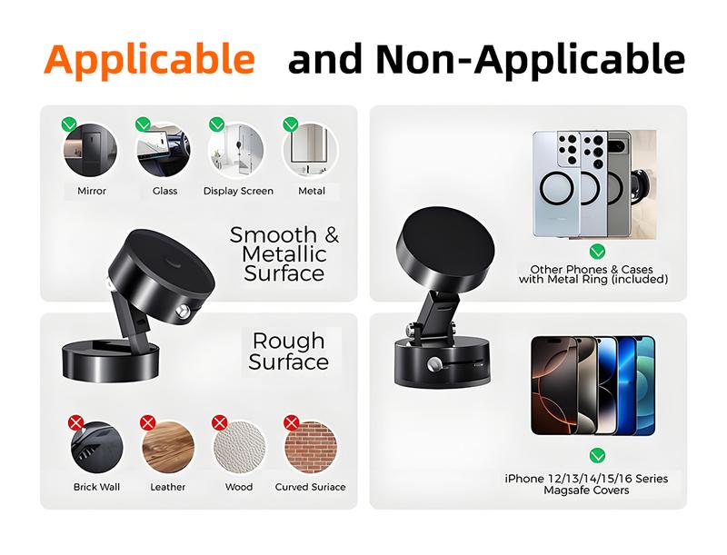 - Reliable and Stable: With a strong suction cup and magnetic design, your phone stays securely mounted wherever you place it.